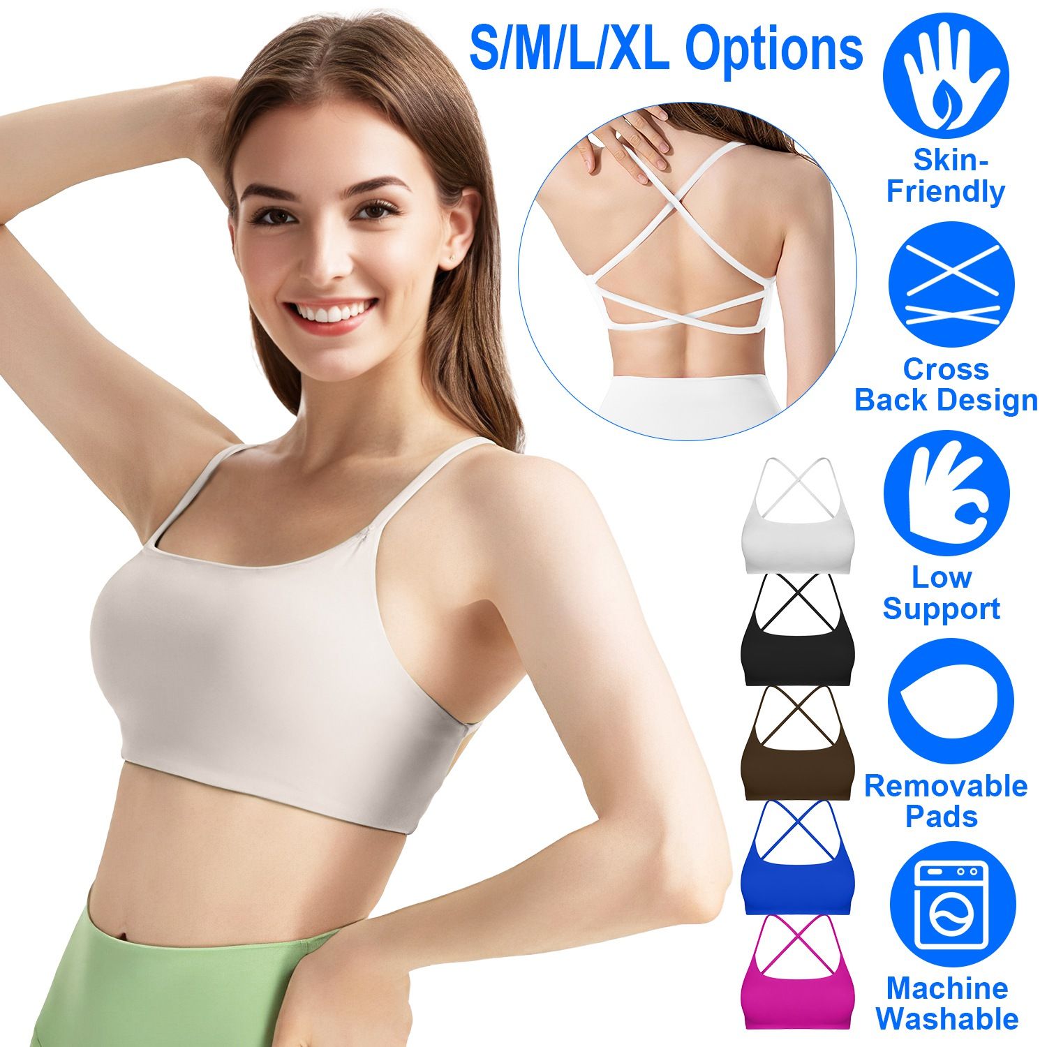 *Soft & Breathable Bra*:Made from 78% Nylon and 22% Elastane materials,this sports bra is super soft,moisture-wicking,skin-friendly and breathable,helping you to keep cool and comfortable every moment. And the bra is machine washable for easy cleaning.