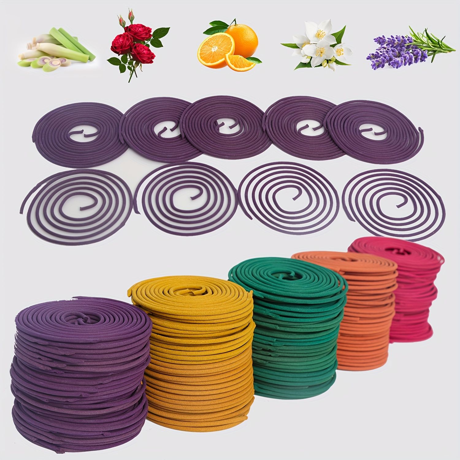 50pcs Spiral Incense, Lemongrass, Rose, Jasmine, Lavender Orange Aromatherapy Coils, Burning Time 3-4 Hours Suitable for Air Purification, Yoga