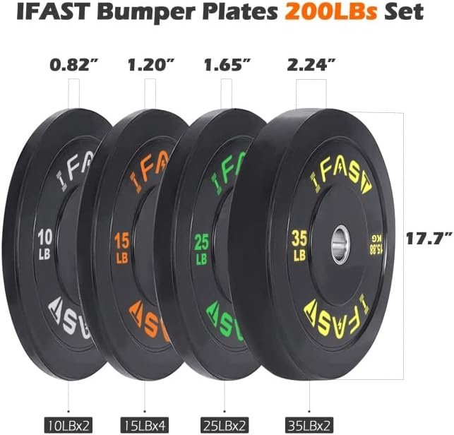 Made of 100% high density rubber, each bumper plate has an inner ring with a diameter of 2"(IWF standard), fits any Olympic barbell or dumbbell bar with a 2inch diameter. The 100 LB WEIGHT SET contains: 1pair 10LBS, 1 pair 15LBS and 1pair 25LBs bumper plates.