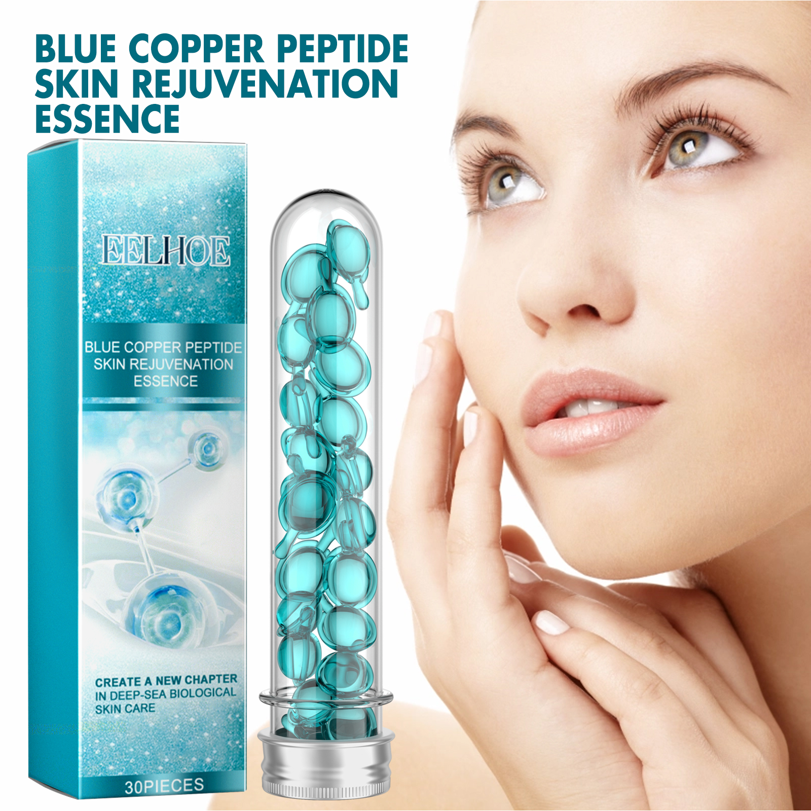 EELHOE Blue Copper Peptide Skin Rejuvenation Essence, Firming Skin Carry Bright Color Of Skin Refreshing Skin Facial Essence