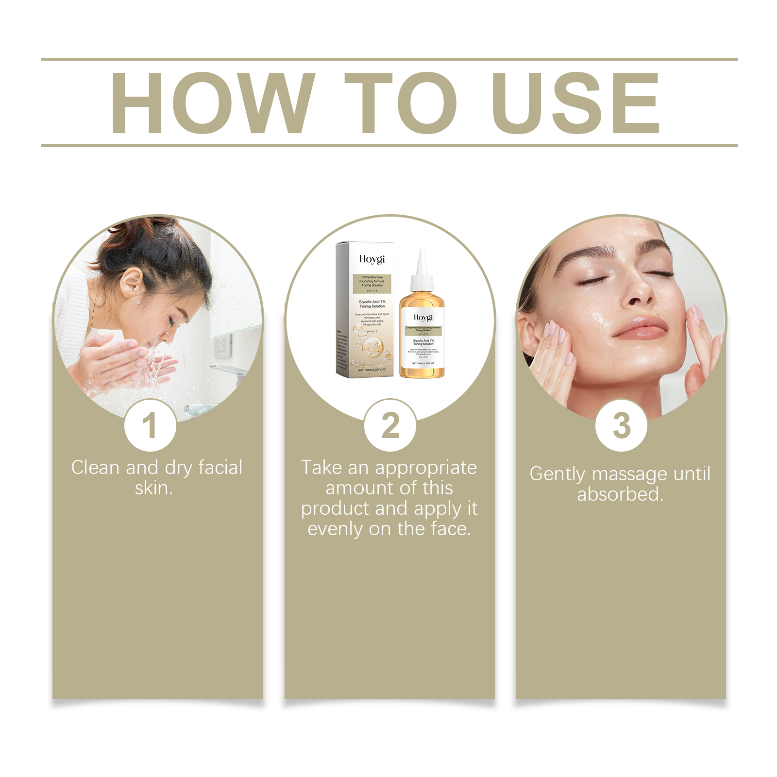 Our toner contains glycolic acid, aloe vera extract and ginseng extract. It can nourish and repair simultaneously, double effect, make the skin more perfect. Reduce acne marks, even skin tone, and keep skin soft. Its application method is simple: 1. Clean and dry facial skin. 2. Apply appropriate amount to face evenly. 3. Gently massage until absorbed. Continuous use can significantly improve skin quality and restore youthful vitality.