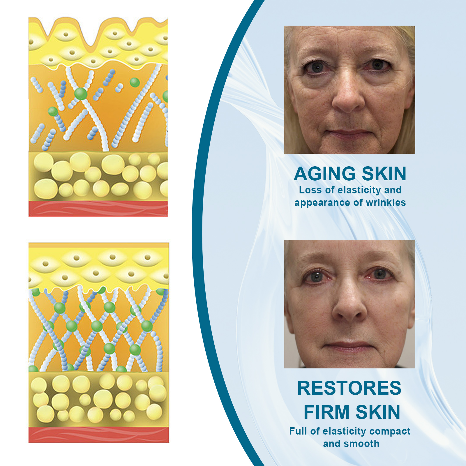 Our collagen firming serum contains palmitoyl pentapeptide, hyaluronic acid, ceramide. It can smooth fine lines and wrinkles on the face, enhance skin elasticity, improve skin firmness, reduce bags under the eyes, laugh lines, etc. Its use method is very simple: after cleansing and toning, take an appropriate amount of essence in the palm of the face, gently pat on the face, massage gently with the fingertips until absorbed. Use daily for better results. Moisturize skin, replenish and lock in skin moisture, and make skin tone more even and whiter.