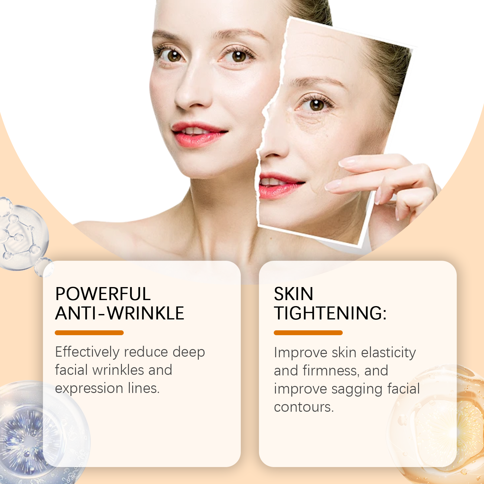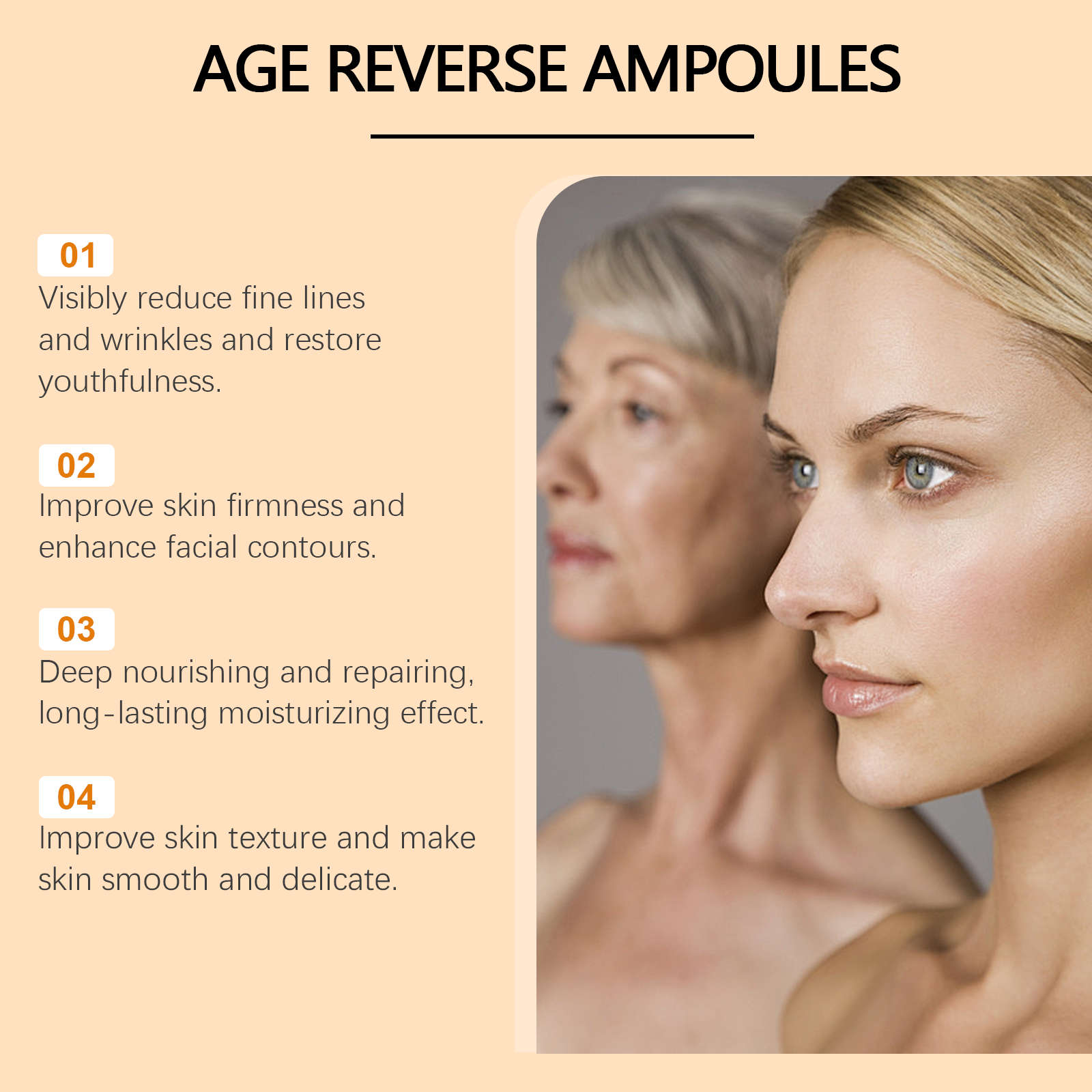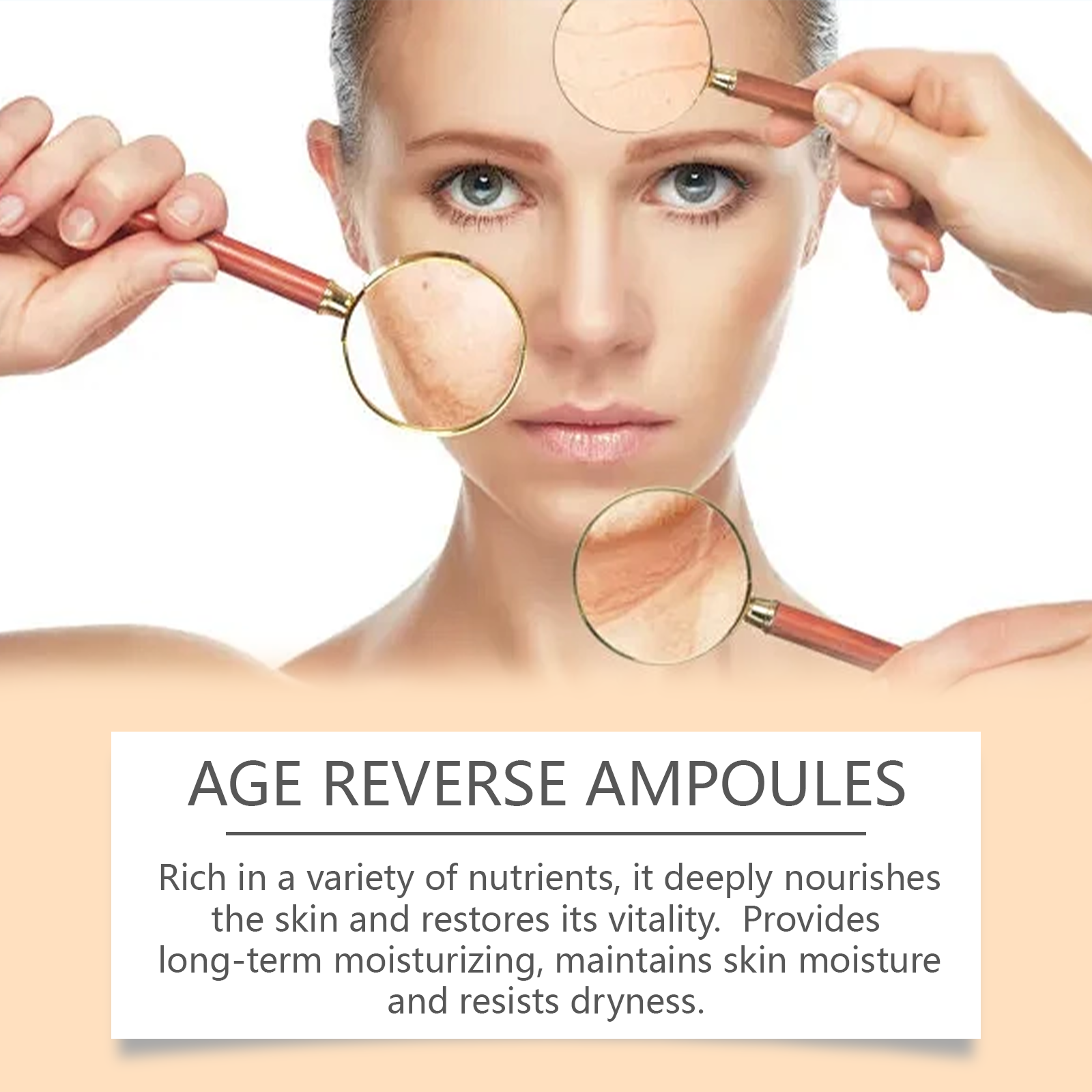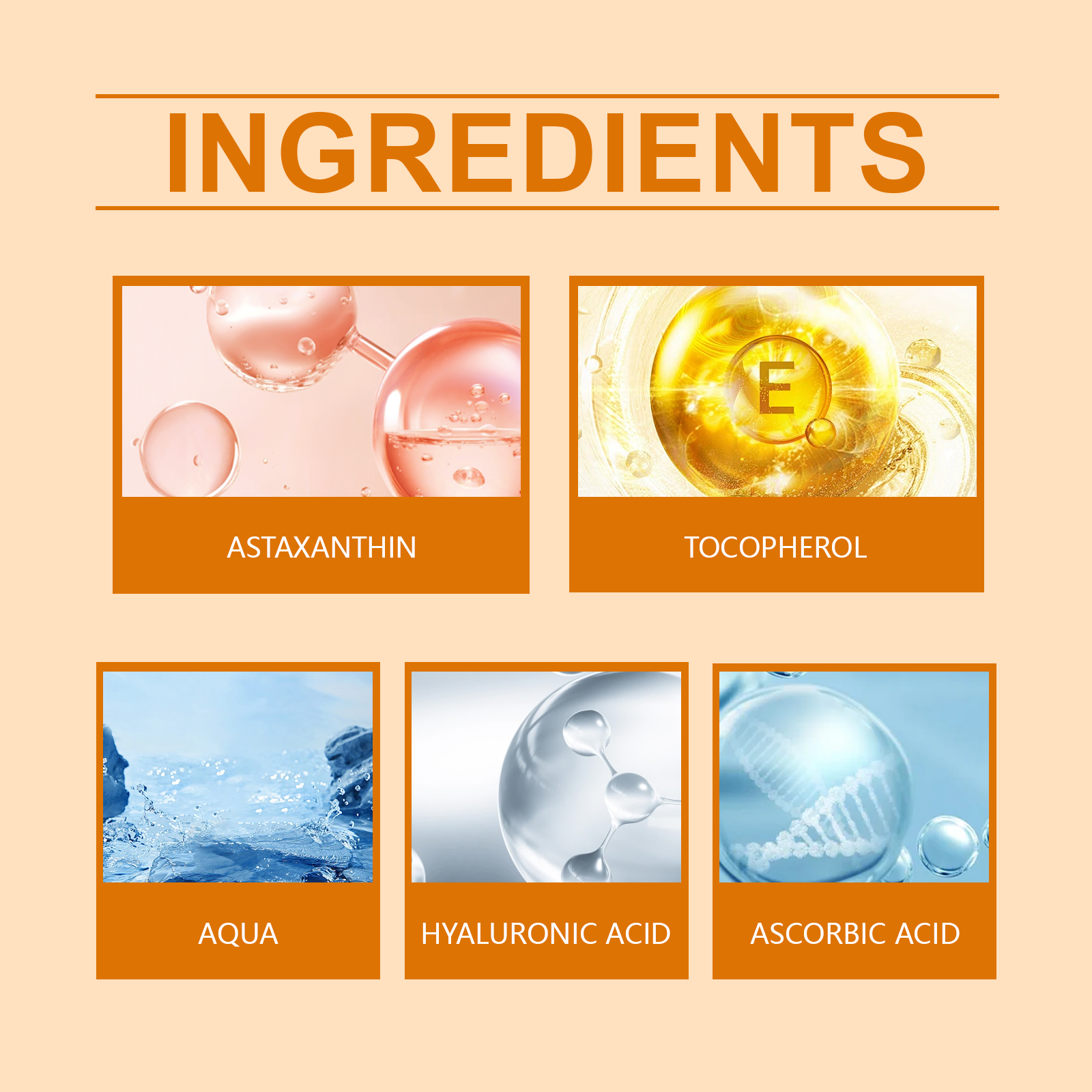 Our astaxanthin ampoule serum contains astaxanthin, hyaluronic acid, ascorbic acid (vitamin C). It can effectively reduce deep facial wrinkles and expression lines, improve skin elasticity and firmness, and improve loose facial contours. The way to use it is simple: 1. Clean your face and keep it dry. 2. Open a bottle of this product and apply evenly to your face. 3. Massage gently in circular motions to promote absorption. Rich in a variety of nutrients, deeply nourish skin, restore skin vitality. Provides long-term moisture, keeps skin hydrated and resists dryness.