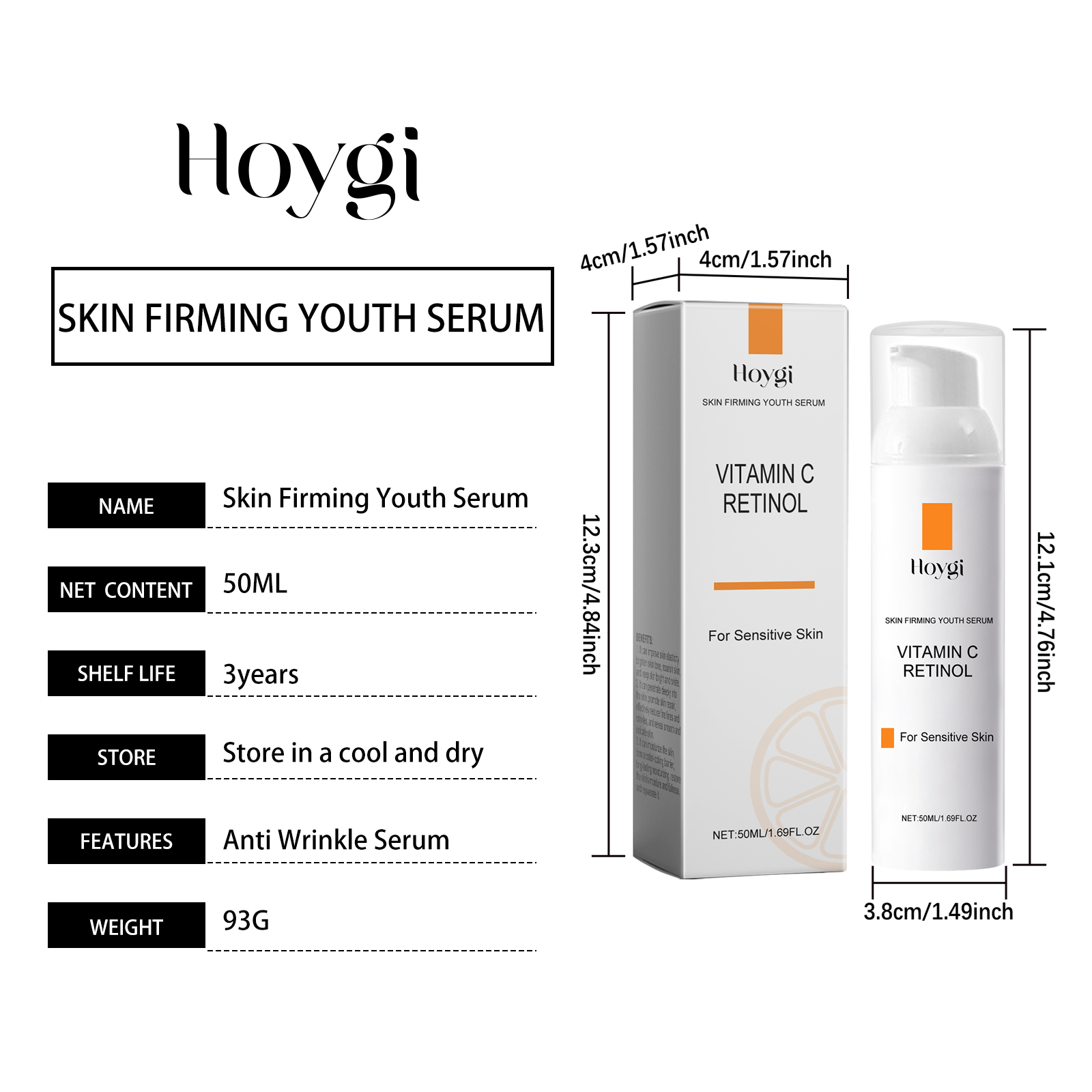 Hoygi Retinol Vitamin C Anti-Wrinkle Serum, Moisturizing Light Line Moisturizing Skin Care Facial Serum