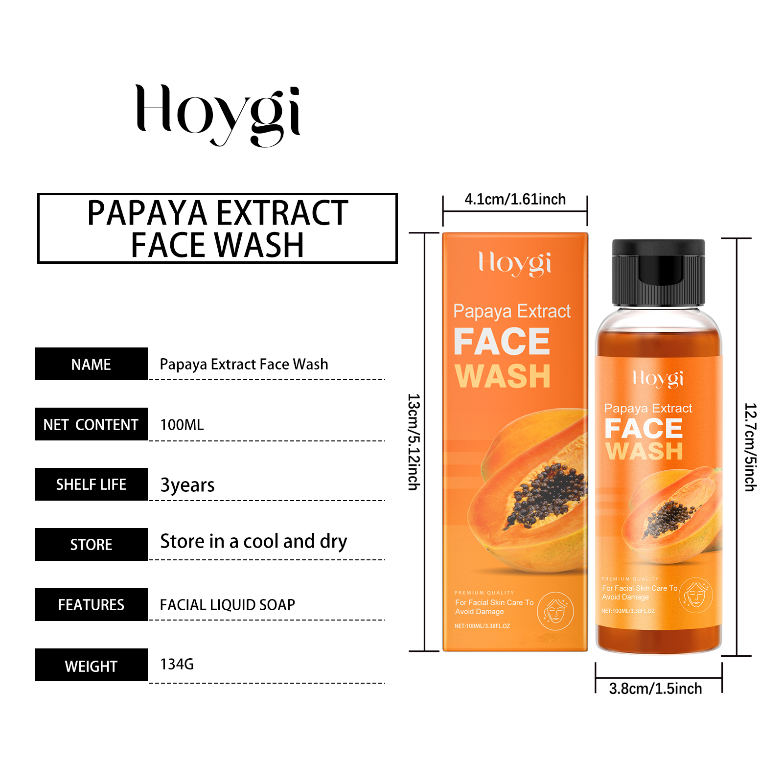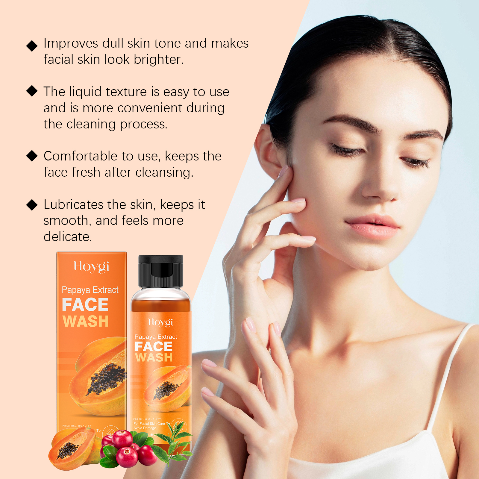 Hoygi Papaya Face Wash, Gentle Cleanser Not Tight Moisturizing Hydrating Moisturizing Skin Tender Skin Care Face Wash
