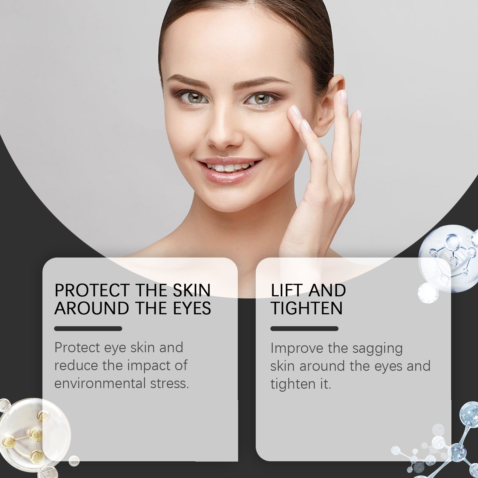 Our niacinamide firming and Smoothing Fine Line Eye cream contains carbomer, palmitoyl pentapeptide-4, and niacinamide. It protects the eye skin and reduces the effects of environmental stress. Improve loose skin around eyes and tighten skin. The way to use it is simple: 1. Clean your skin and keep it dry. 2. Apply appropriate amount of the product evenly around eyes or under eye bags; 3. Gently massage with fingertips until completely absorbed. Quickly improve the symptoms of eye strain. Transparent texture, comfortable experience. Enhances eye defense against everyday injuries.