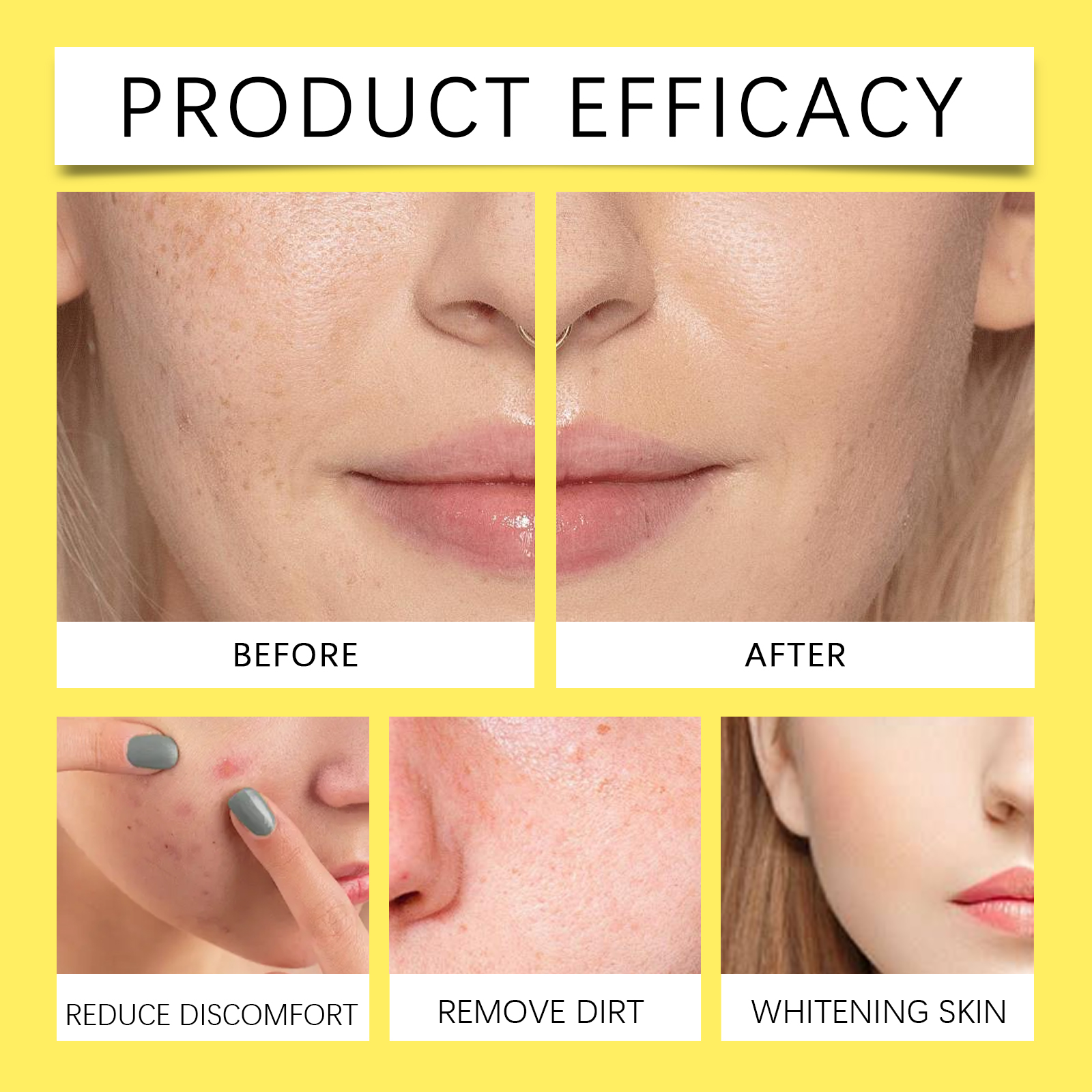 Our turmeric exfoliating cleanser contains lemon fruit extract, ascorbic acid (vitamin C). It can effectively reduce color spots and make the skin more even and bright. The way to use it is simple: first moisturize the face. Take a piece of this product with tweezers and gently rub it on your face and massage it in a circular motion to promote absorption. Wait 1-2 minutes, then rinse off with water. It can also deeply clean pores, remove dirt and excess oil, and keep skin fresh.