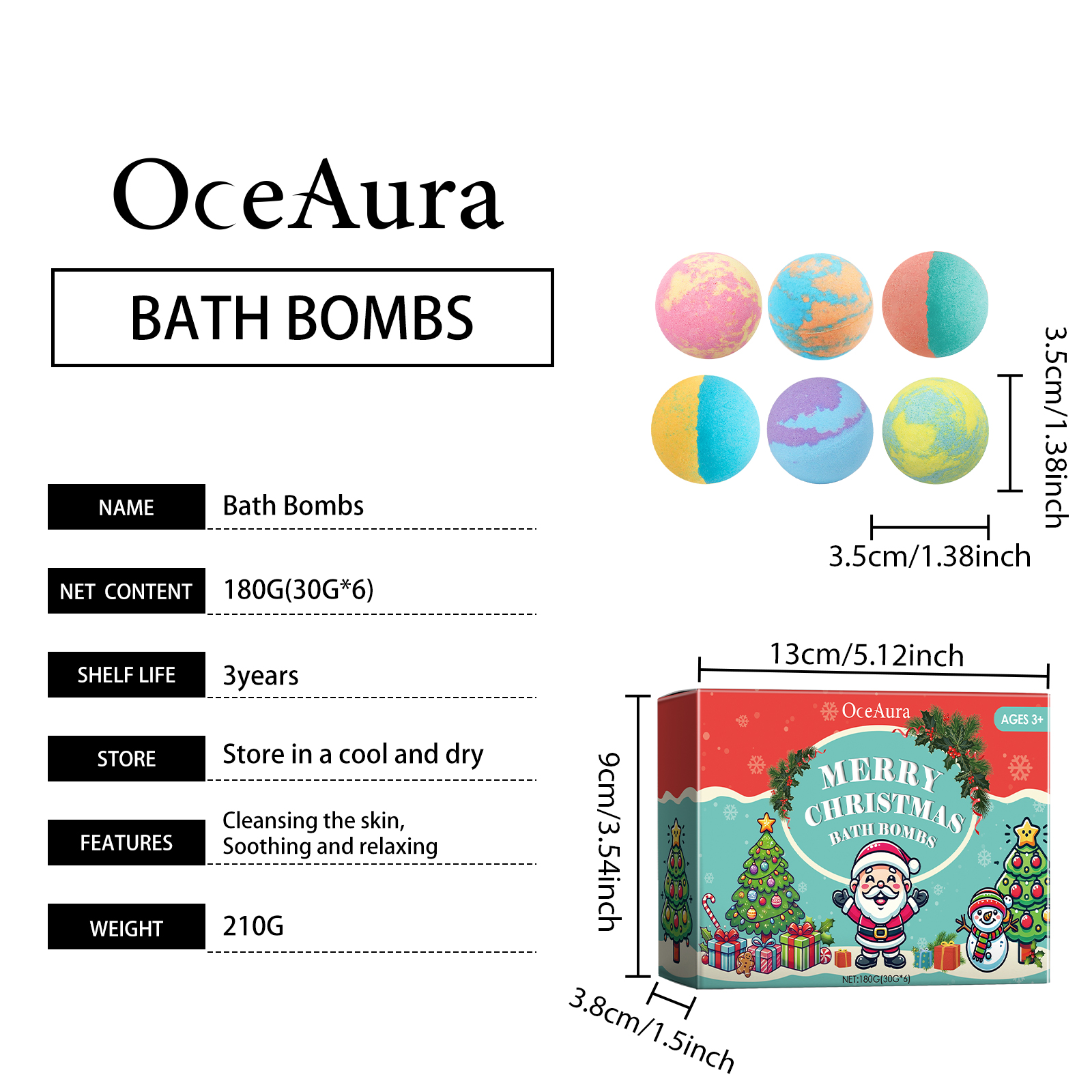 Home > OceAura Christmas Colorful Bath Ball, Bubble Shower Fragrance Moisturizes Long-Lasting Plant Cleaning Bath Ball