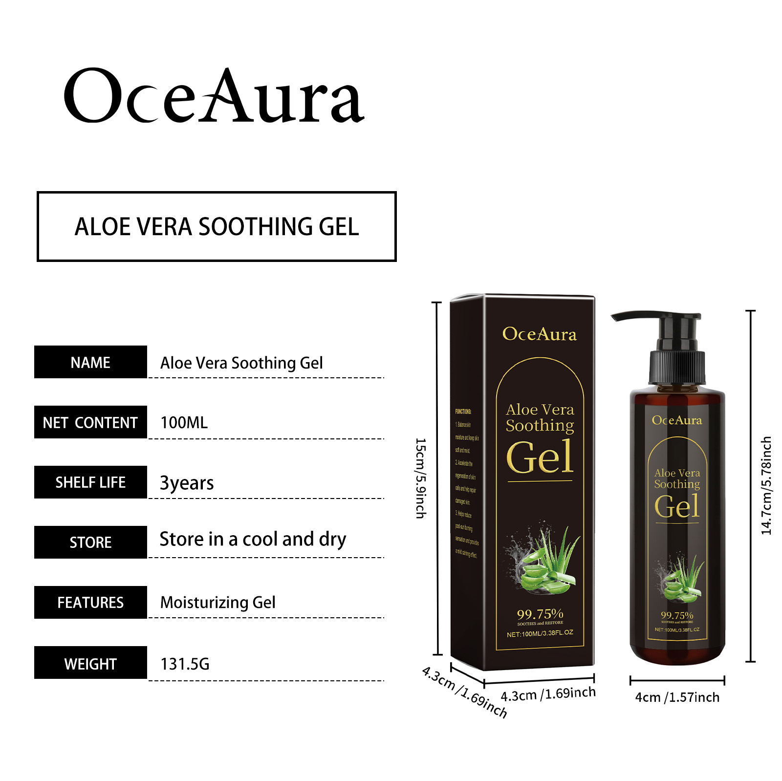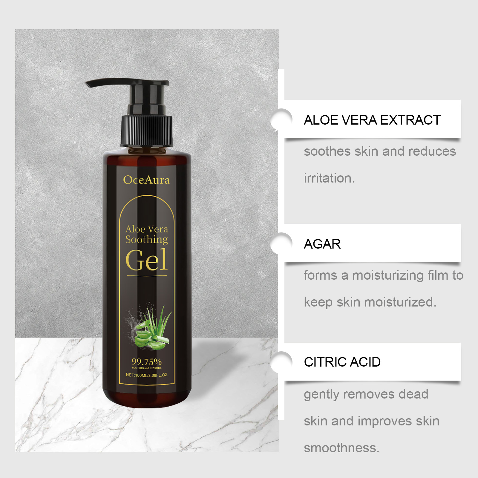 Home > OceAura Aloe Vera Leaf Soothing Gel, Moisturizing Gentle And Comfortable Skin Moisturizing And Hydrating Skin Care Gel
