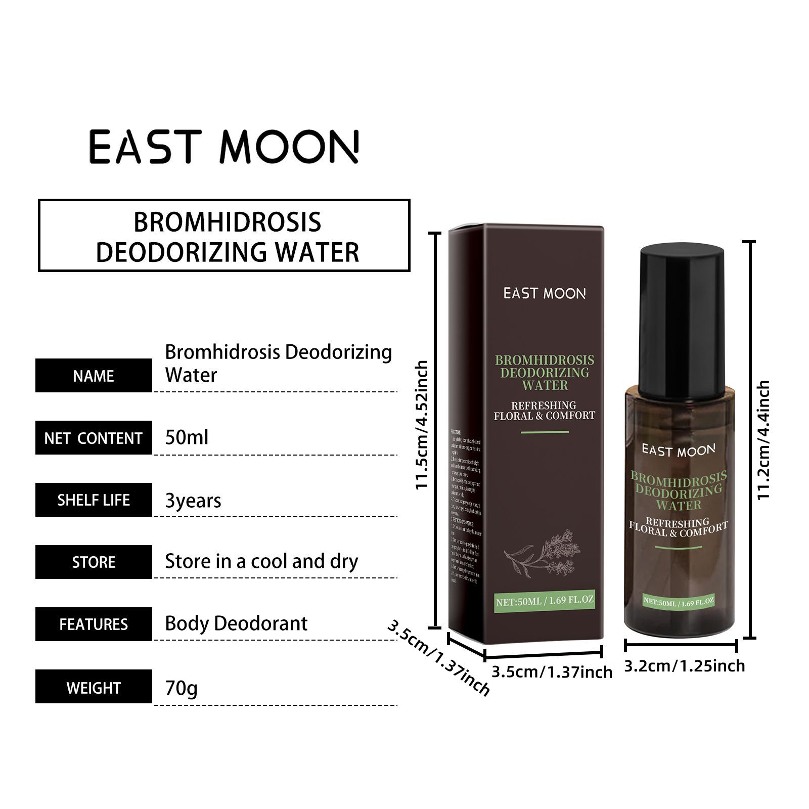 East Moon Men's Freshening Spray Armpit Odor Perspiration Cleaning Natural Fragrance Treatment Spray