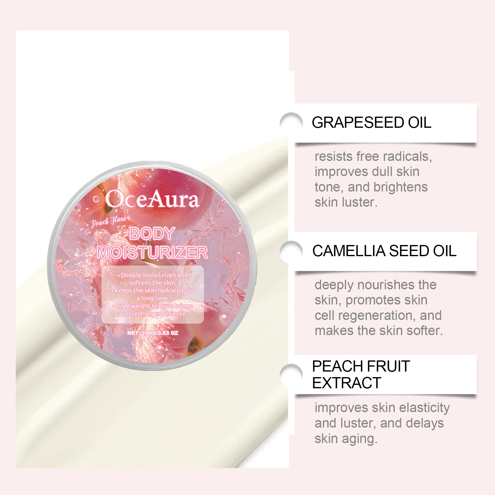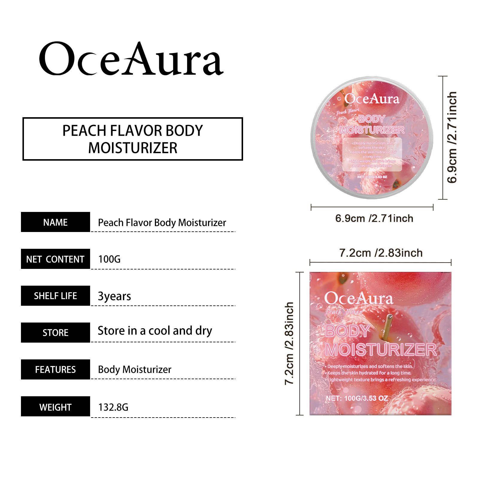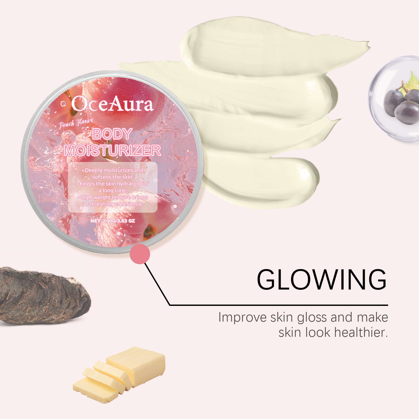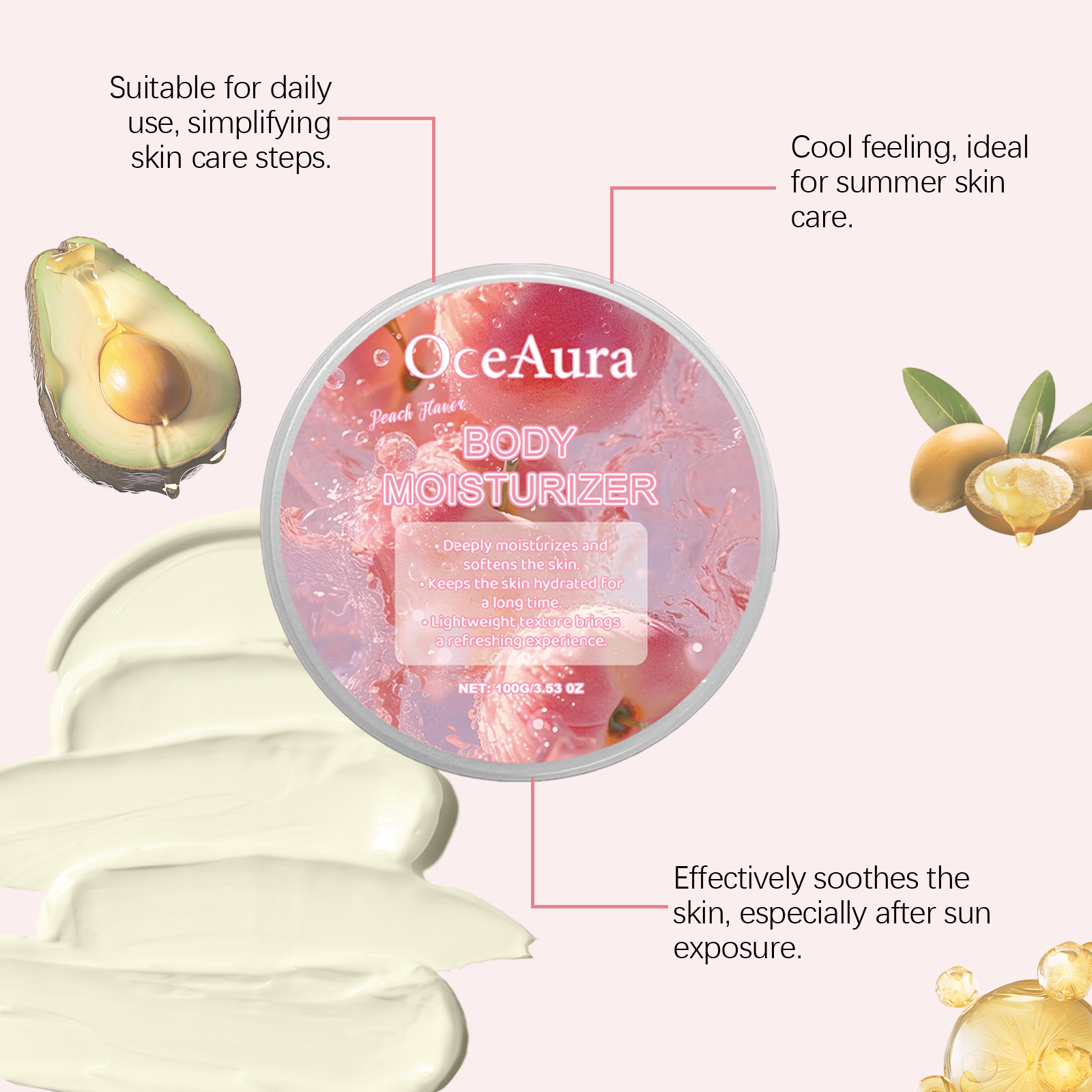 OceAura Peach Moisturizing Moisturizer, Body Moisturizing Treatment Hydrating Refreshing Firming Body Cream