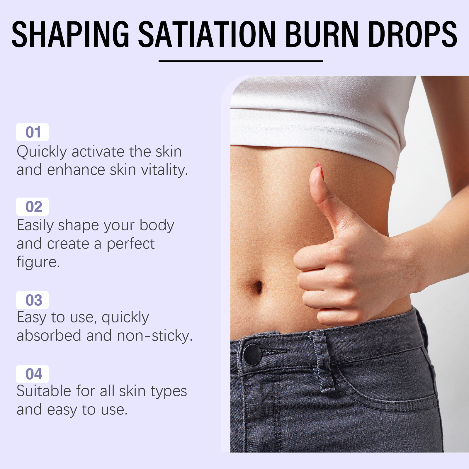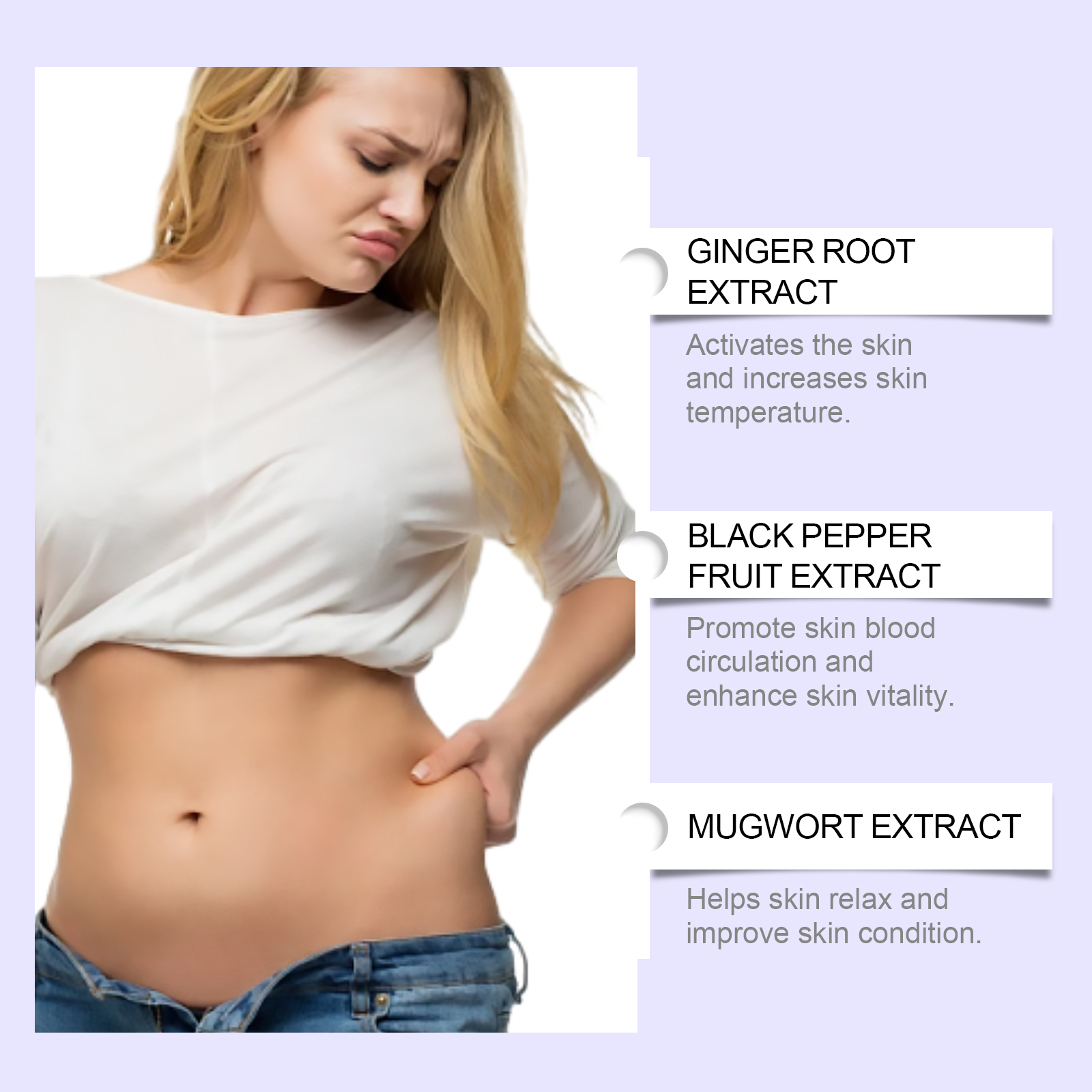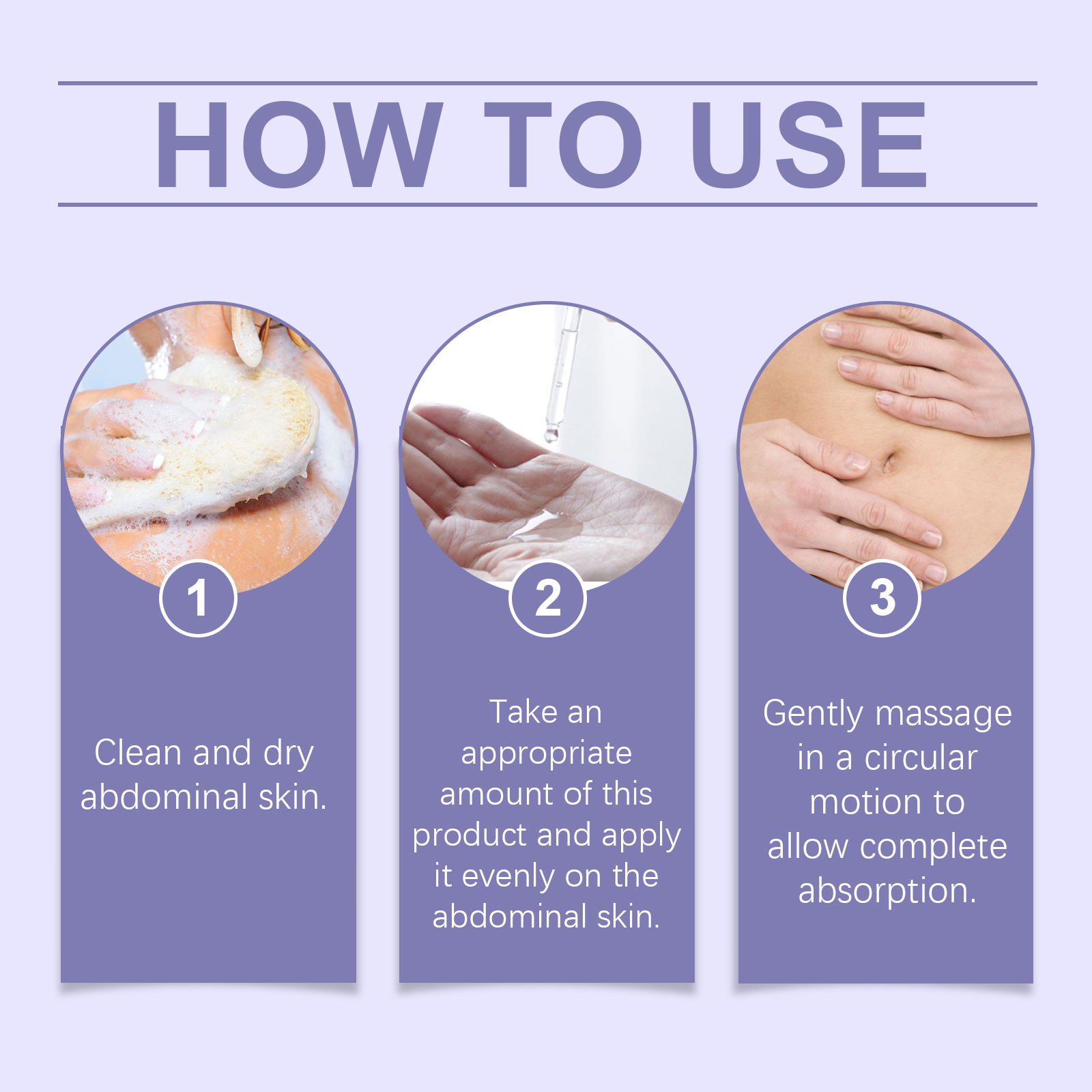 Our essential oils contain ginger root extract, mugwort extract, black pepper fruit extract. It can stimulate the skin, wake up the skin vitality, fresh skin. Enhances skin tone and improves relaxation. The way to use it is simple: 1. Clean and dry the belly skin. 2. Apply appropriate amount of this product evenly on abdomen skin. 3. Gently massage in circular motions to fully absorb. Keep your skin smooth and delicate for a long time so you can continue to experience it. Can be easily used at home or on the go. Easy to carry, you can take care of skin anytime, anywhere.