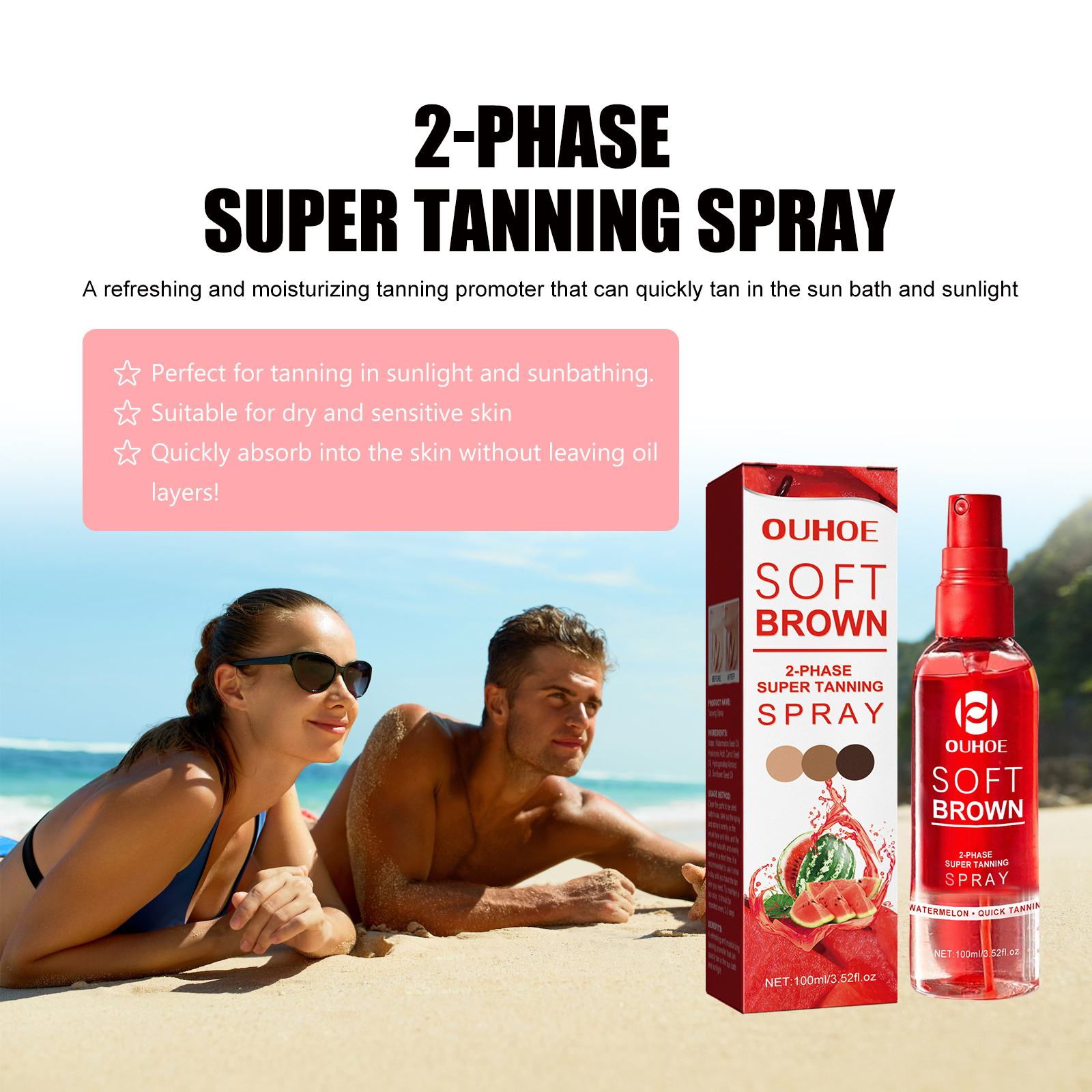 Home > OUHOE Tanning Spray, Outdoor Tanning Self-Tanning Bronze Skin Moisturizing And Toning Spray