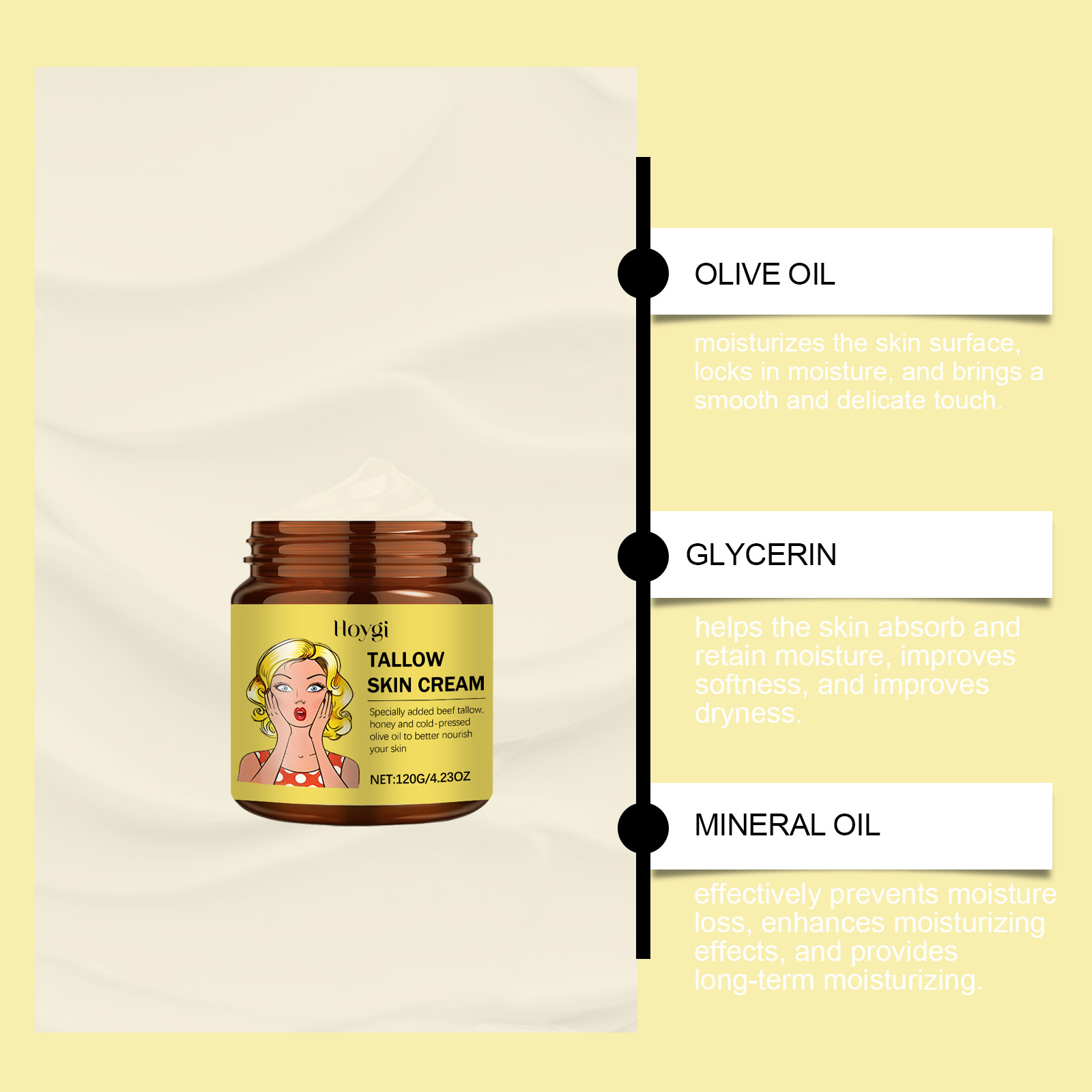 Hoygi Tallow Honey Moisturizer, Gentle Hydrating Moisturizing Facial Skin Tender Care Moisturizer
