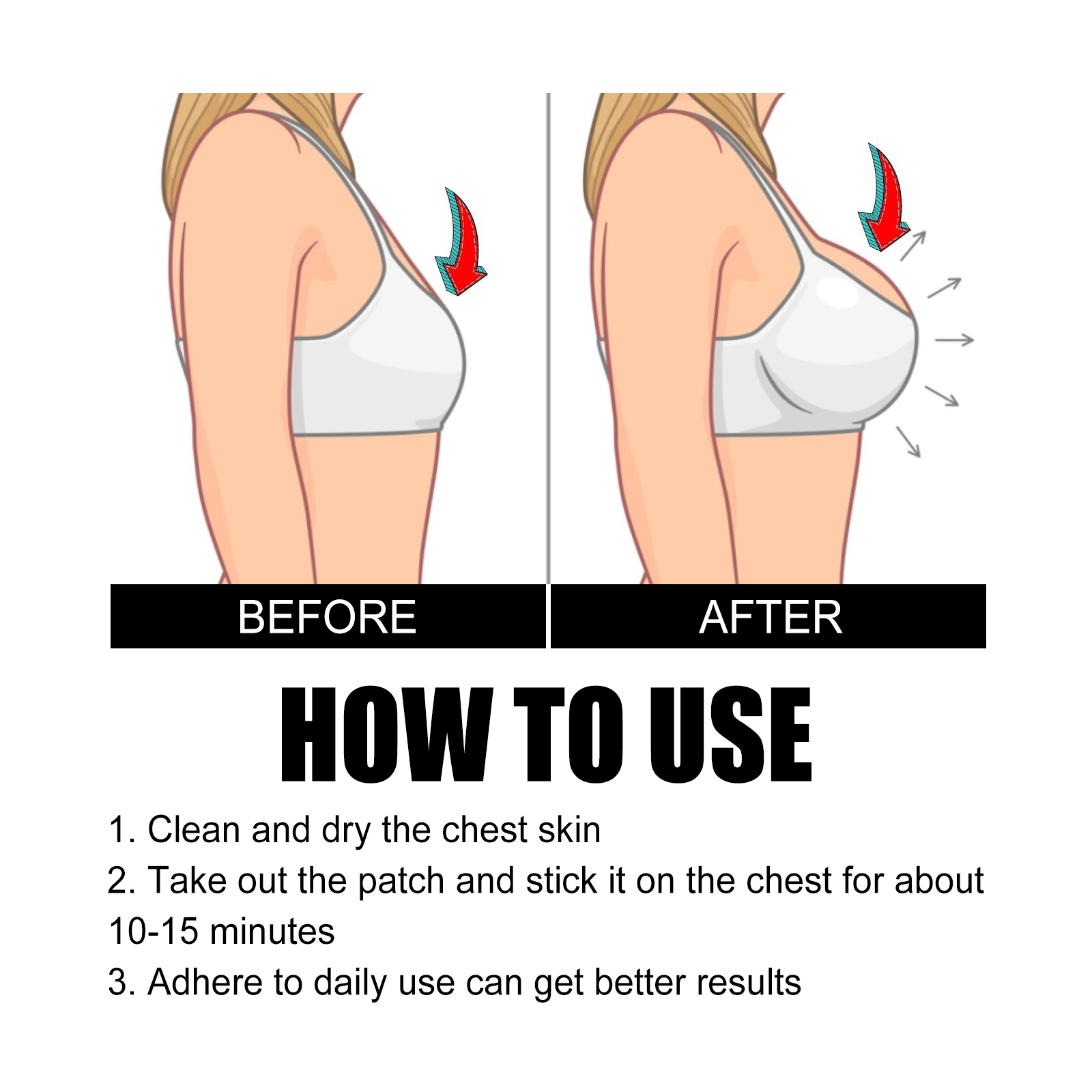 Our breast patches contain papaya extract, pueraria extract and angelica extract. It can promote breast enhancement and breast tightening, improve breast sagging, dryness, sagging, atrophy, and solve the problem of breast dysplasia. Its use method is very simple: first clean and dry the chest skin, take out the patch, stick on the chest for about 10-15 minutes, adhere to daily use can get better results, tighten the chest after use, lift the breast, improve the overall firmness and elasticity. Regain your confidence and reveal your infinite charm.