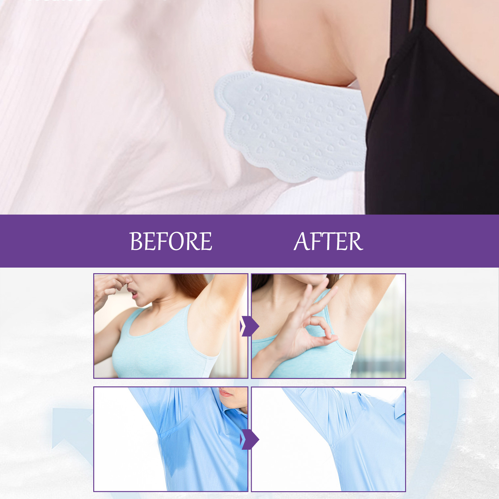 Our armpit sweat pads contain a premium cotton, glue layer. It can quickly absorb underarm sweat, keep armpit dry and fresh, clean odor, fresh and invisible, lasting absorption of sweat. Its use method is very simple: strip the protective layer behind the patch; Put the sweat pad on the inside of the clothes, pay attention to the wide side of the sweat pad should be attached to the inside of the sleeve, and the narrow side of the sweat pad should be attached to the outside of the sleeve; Remove it from your clothes after use. Armpit sweat pad material is soft, super absorbent, odorless, durable, breathable and absorbent, aromatic, reduce odor.