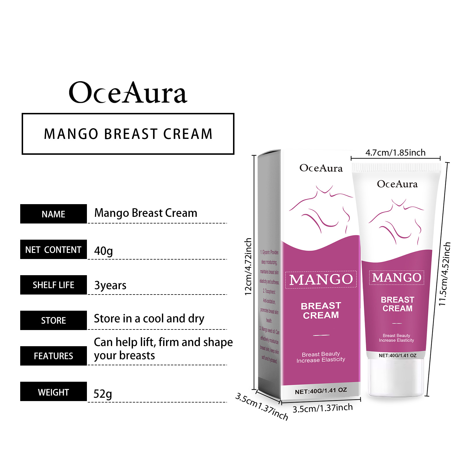 Home > OceAura Breast Massage Cream Breast Skin Massage Nourishes Smooth Skin And Gently Protects Women's Beauty