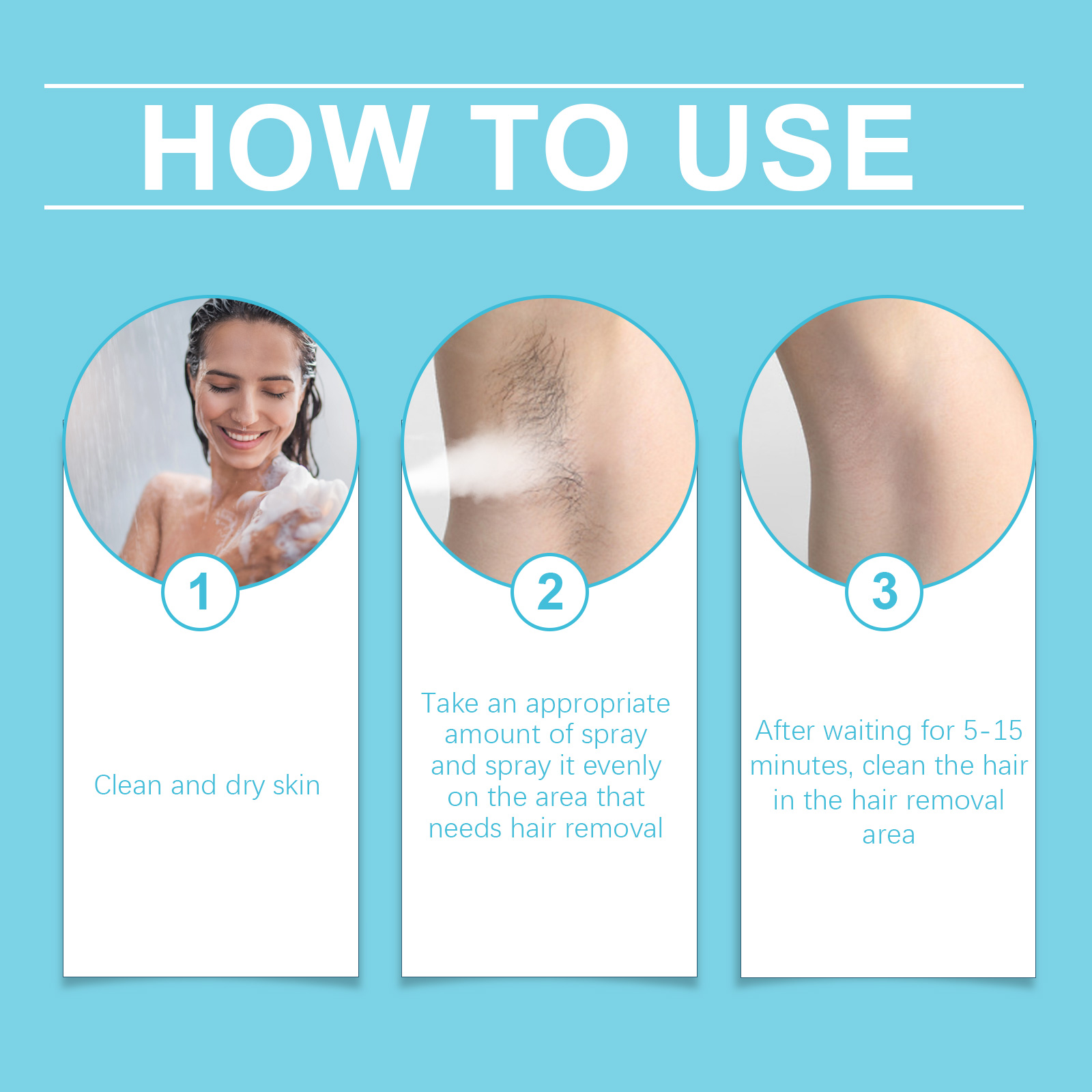 Our hair removal spray contains glycerin, aloe vera extract, witch hazel extract. It can quickly penetrate the hair roots and can be easily wiped off in a few minutes, significantly improving efficiency; Add a pleasant experience with a fresh and elegant scent, fragrant after hair removal. Its use is simple: 1. Clean and dry the skin; 2. Take appropriate amount of spray and spray evenly on the parts that need hair removal; 3. After waiting 5-15 minutes, clean the hair in the hair removal area. Fast action, no need to wait for a long time, instant witness smoothly. Contains a variety of plant extracts to reduce the need for frequent hair removal and make the skin more delicate.