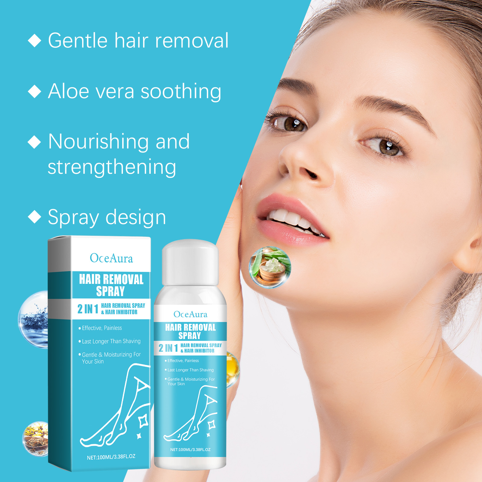 Home > OceAura Hair Removal Spray Refreshing Moisturizing Gentle Smooth Hand Hair Leg Hair Skin Gentle Formula Hair Removal Spray