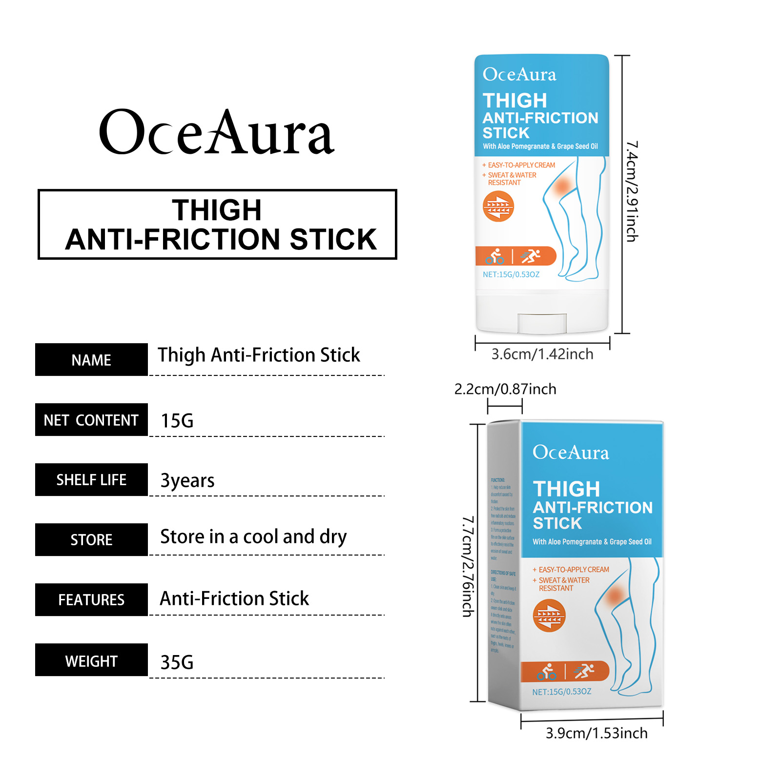 Home > OceAura Moisturizing Anti-Friction Balm For Leg Skin Nourishes, Lubricated, Refreshing And Non-Greasy